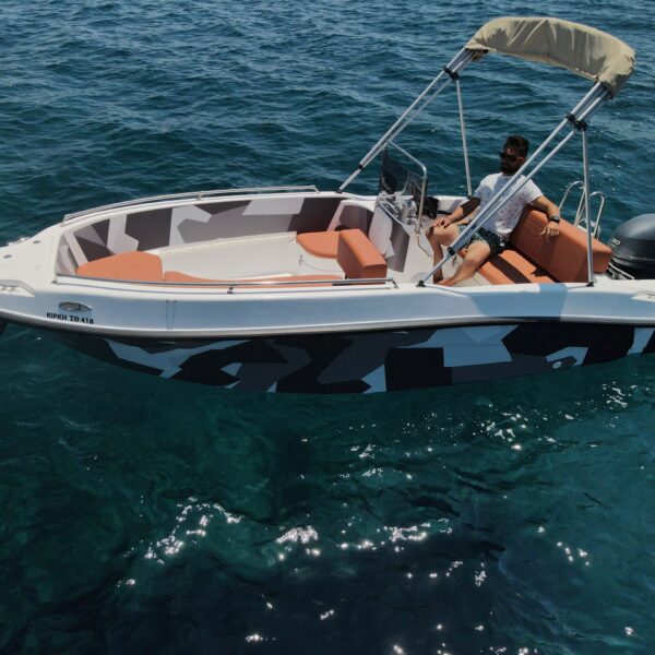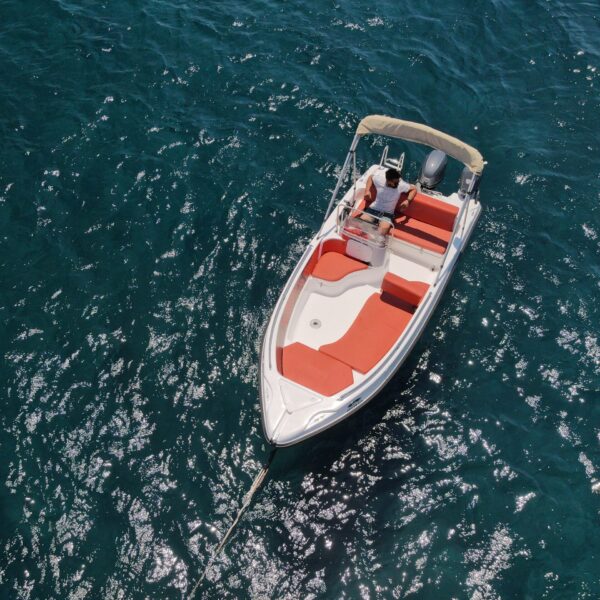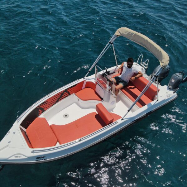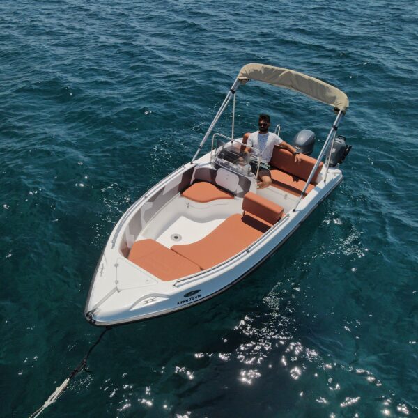 No license is needed to drive this type of boat and you can freely cruise around Santorini, the Volcanoes, Thirassia and Aspronisi.