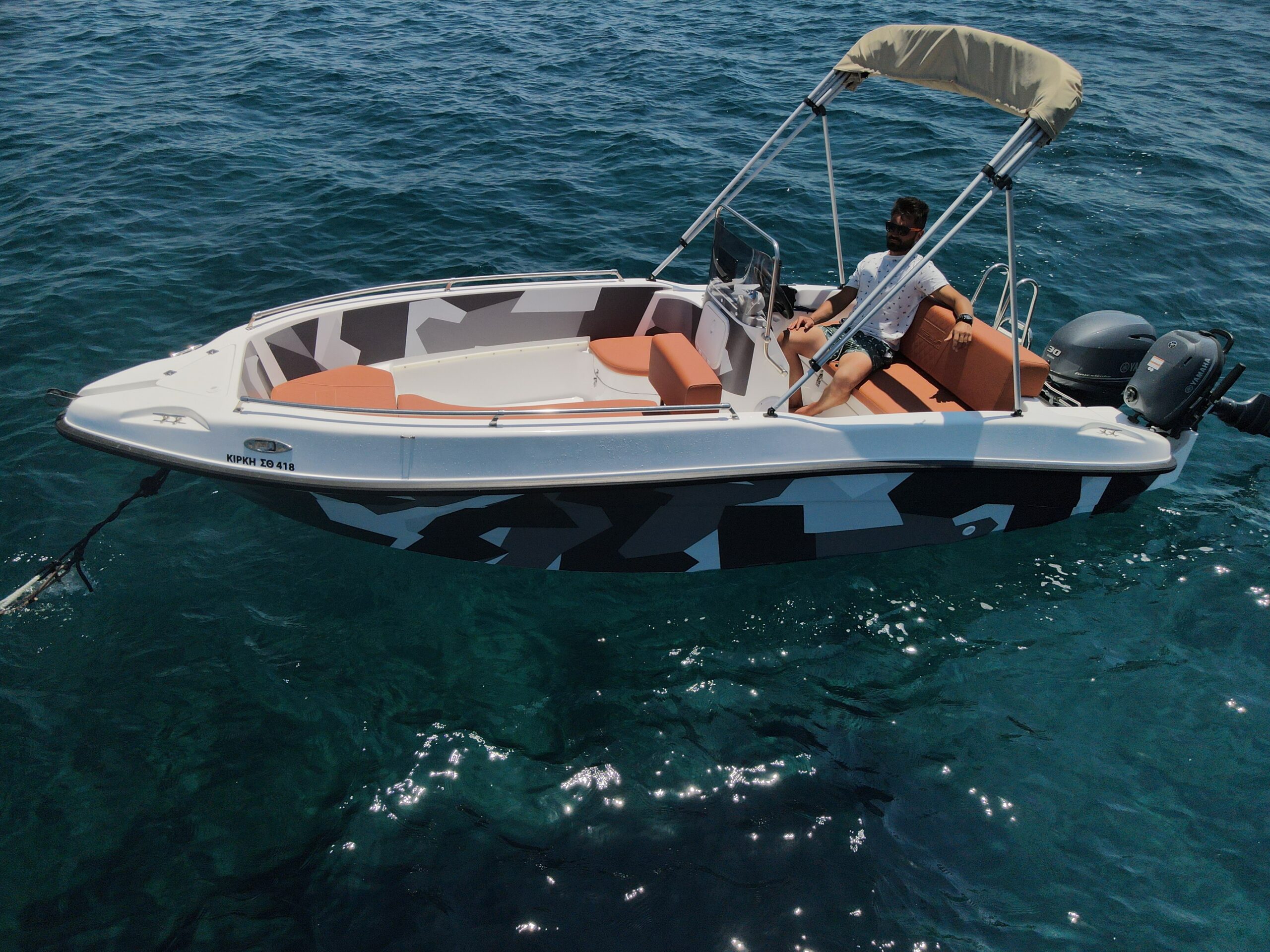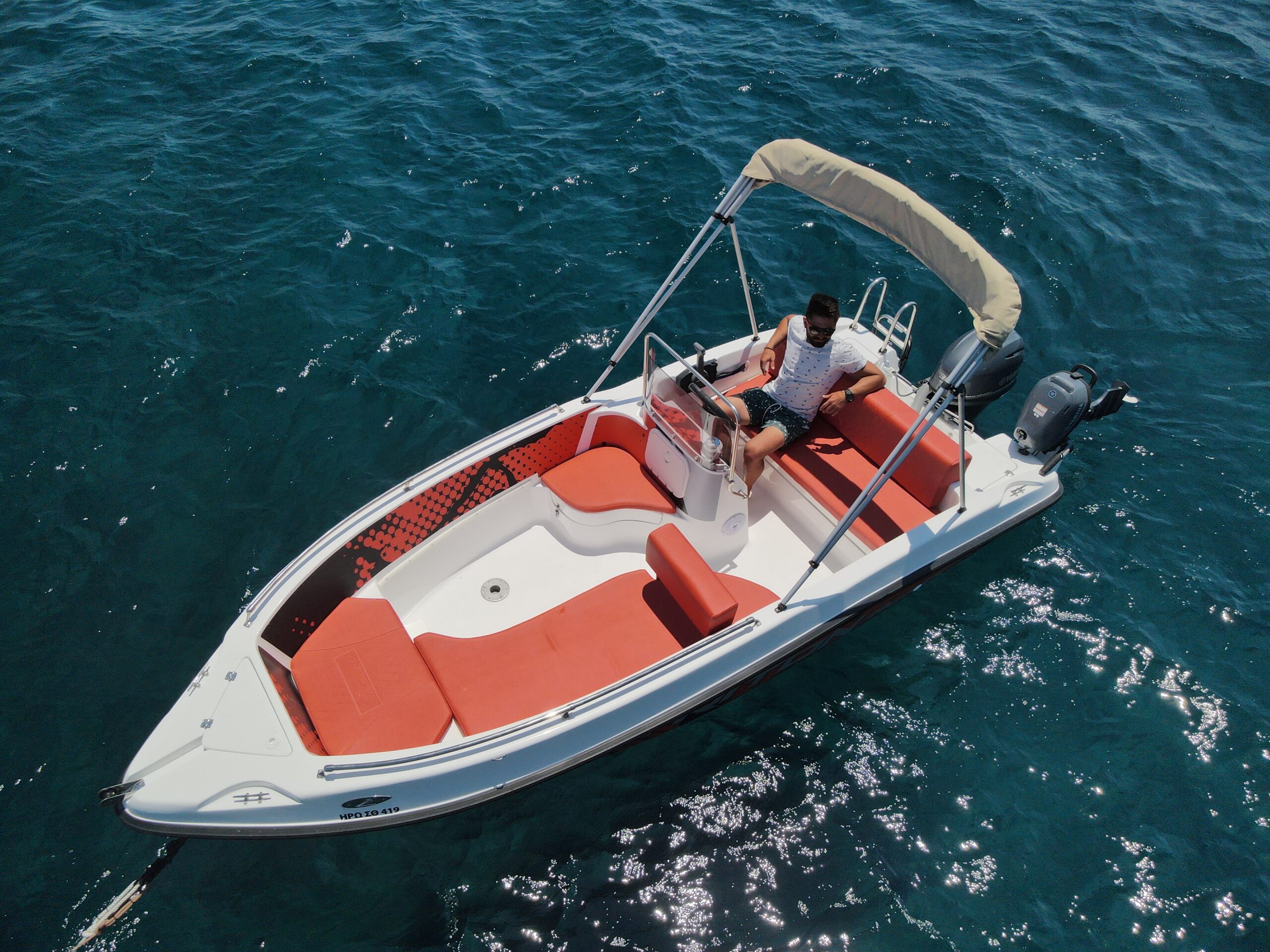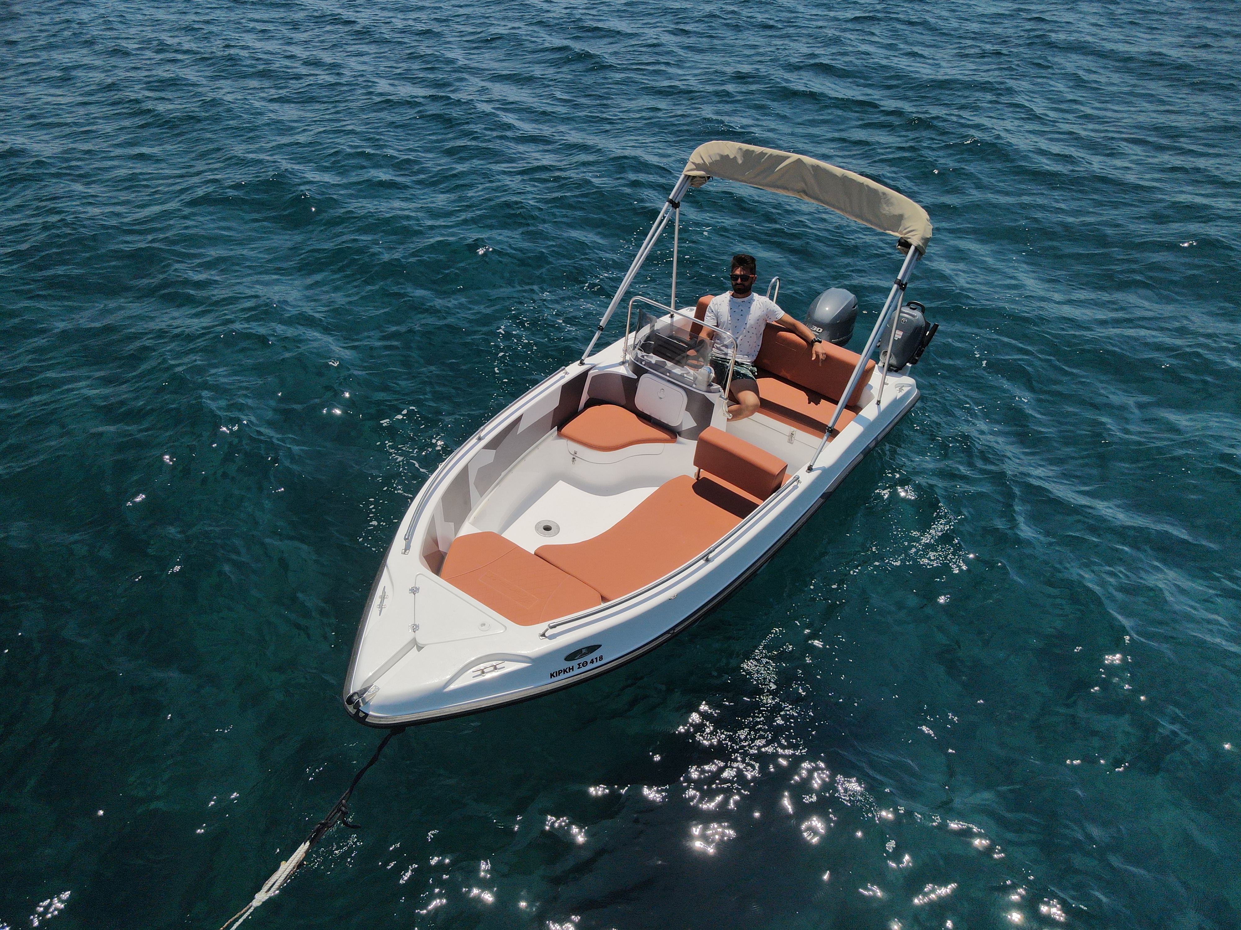No license is needed to drive this type of boat and you can freely cruise around Santorini, the Volcanoes, Thirassia and Aspronisi.